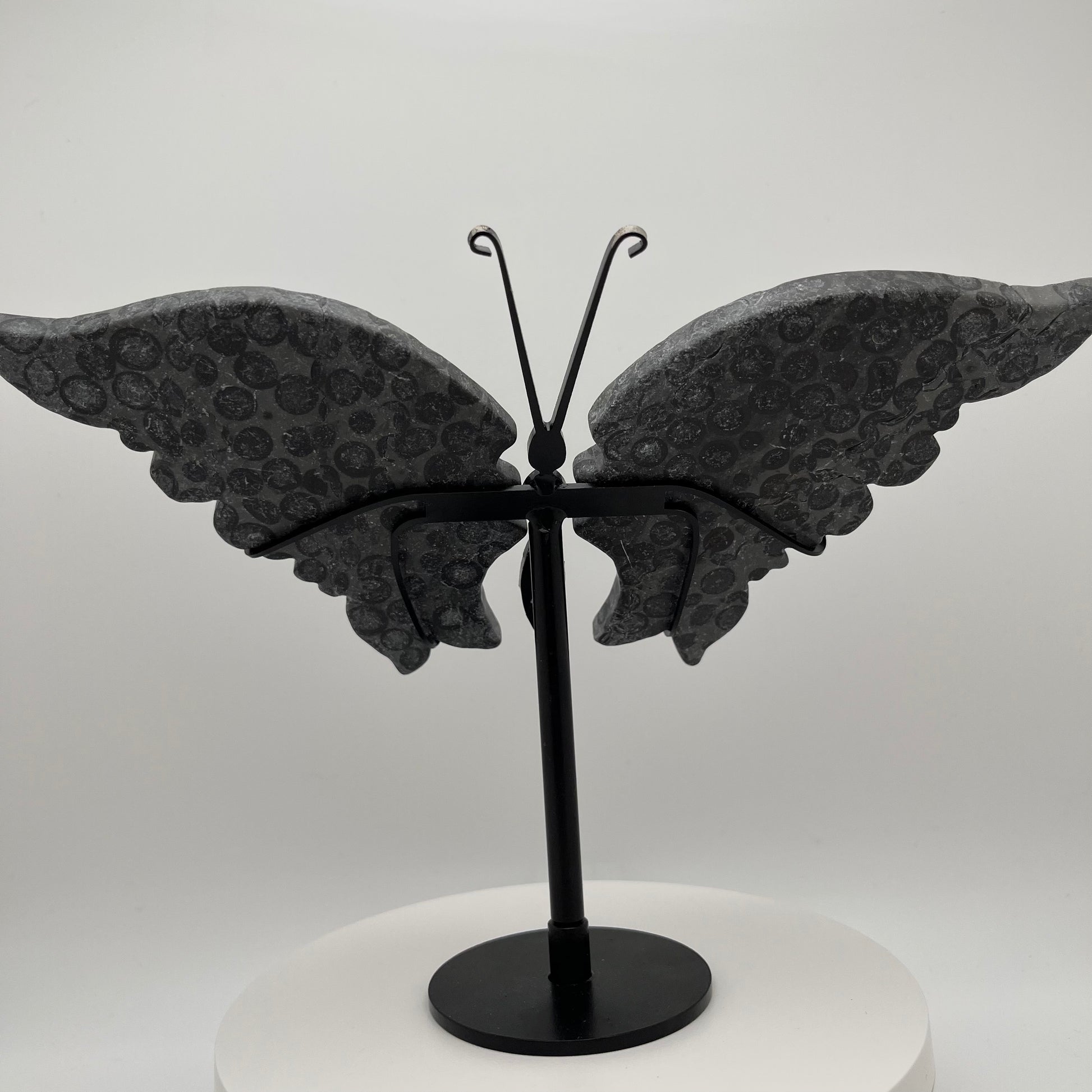 8.4” wingspan, each wing 4” wide, 4.25” tall, 5.6” tall on stand