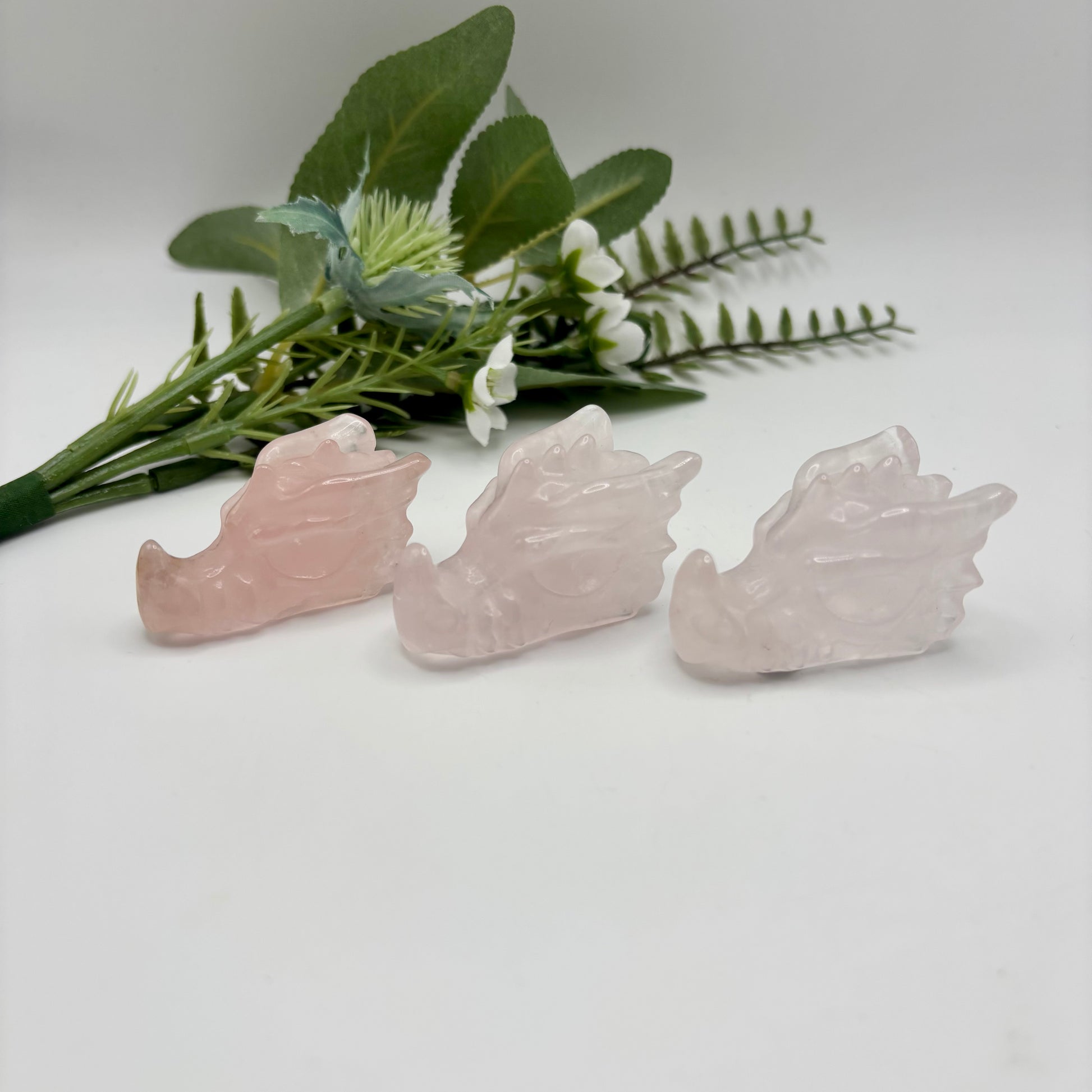 Rose Quartz Dragon Heads