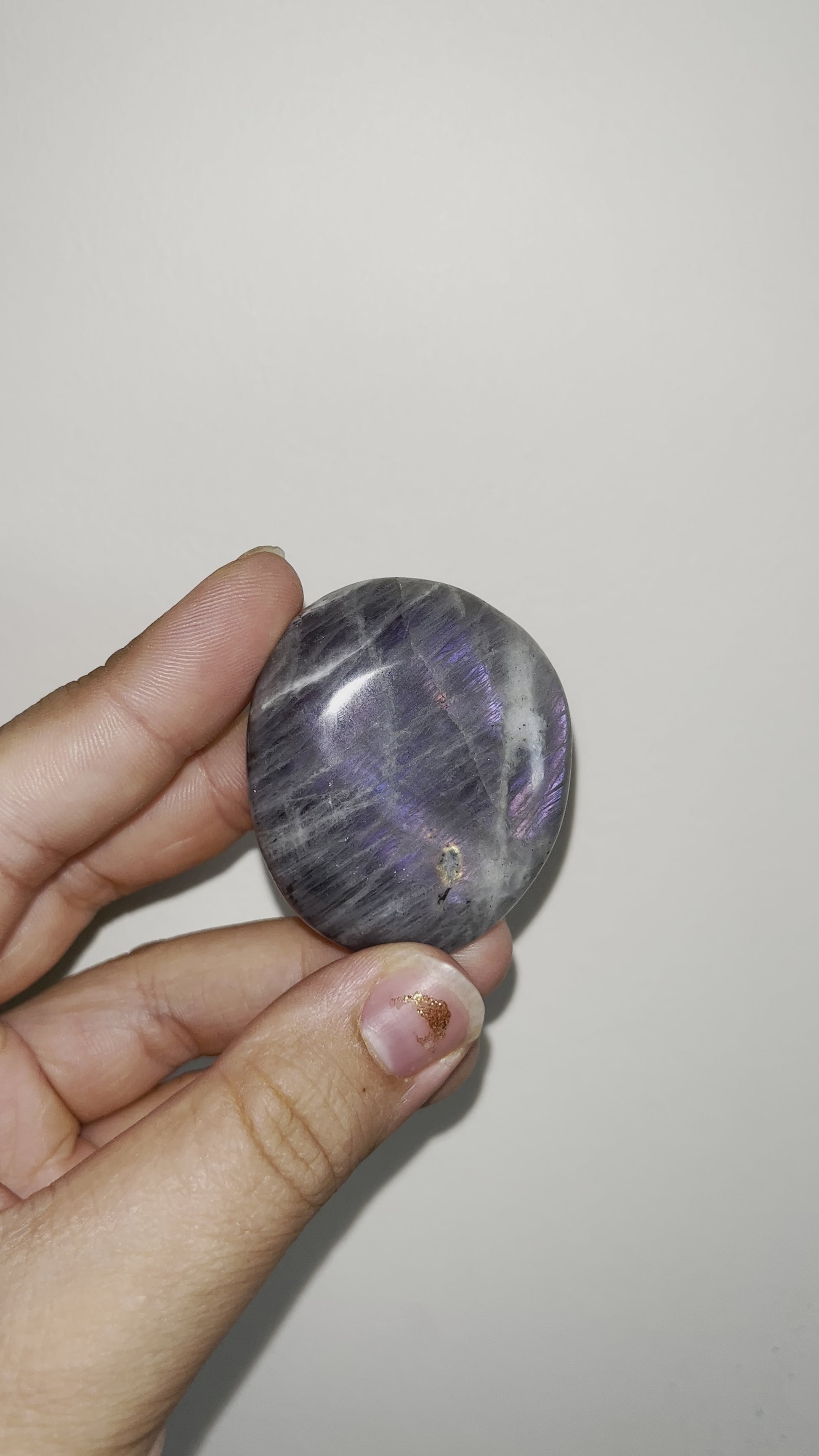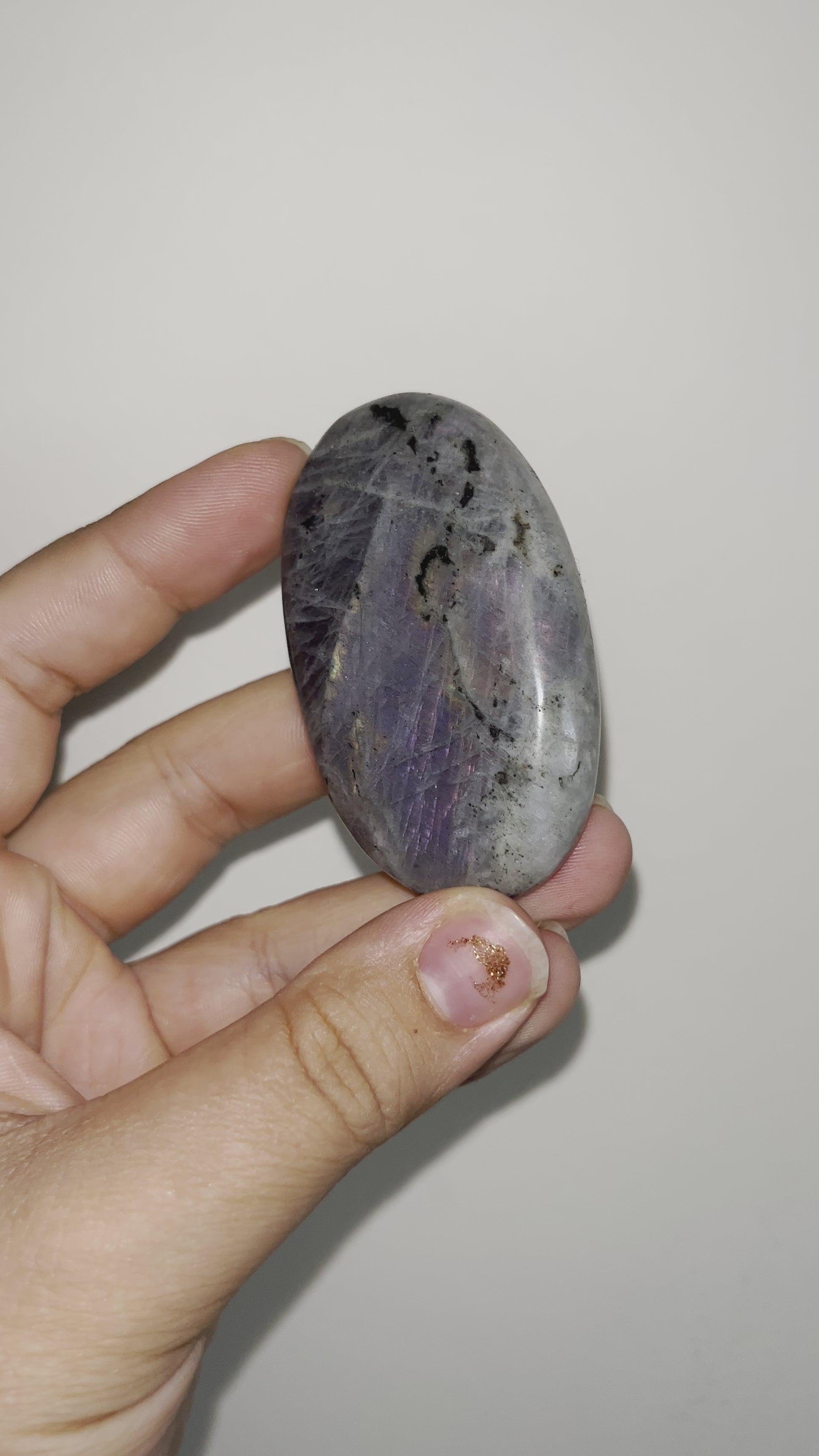 Purple labradorite is a protection stone that wards off negativity, balancing yin/yang energies and protecting its wearer from psychic attack. It brings spiritual connection and deep peace. A powerful grounding stone, purple labradorite assists in developing one's intuitive gifts and is helpful in meditation.